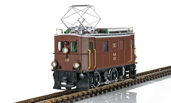 Von den kleinen Lokomotiven der Bauart Ge 2/4 wurden ursprünglich 7 Stück für die RhB gebaut. Die Lok 204 wurde nach einer Modernisierung im Jahr 1946 zur Ge 2/4 222. Ausgestattet mit einem neuen Motor und einer neuen elektrischen Ausstattung war sie fortan einer Ge 4/6 ebenbürtig. Die Lok 222 ist heute bei der RhB als betriebsfähige Museumslok erhalten und wird gelegentlich für Extrafahrten eingesetzt. LGB setzt das Vorbild korrekt ins Modell um. Erstmalig erhält die Ge 2/4 einem serienmäßig eingebauten Pufferspeicher.