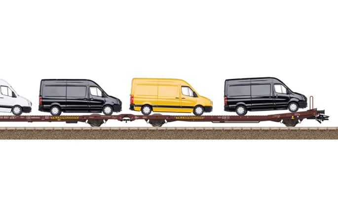 Die Doppel-Flachwagen der Gattung Laads wurden von der Firma Transwaggon in den späten 1970 als Typ TWA 800 A entwickelt. In den späten 1980er Jahren folgte der Typ TWA 800B. Diese TWA 800 B findet nun den Weg in das Märklin-Programm. Er ist sowohl beladen (VW Carfter Transporter) als auch unbeladen erhältlich. Das neu konstruierte Modell besteht vorrangig aus Zinkdruckguss und hat hervorragende Laufeigenschaften.