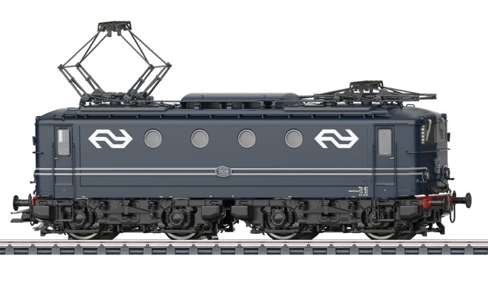 Basierend auf der französischen Reihe BB 8100, erhielten die niederländischen NS ab 1950 diese kurzen von Alsthom gebauten Lokomotiven. Bis 1956 wurden insgesamt 60 Stück geliefert. Die ab 1977 mit einer neuen "Nase" versehenen Loks blieben noch bis ca. 1999 im aktiven Dienst. Fünf Exemplare blieben in Museen oder bei Eisenbahnvereinen erhalten.Die 1100 ist bereits seit den 1960er Jahren im Märklin Sortiment. Das neue Modell stellt als komplette Neukonstruktion eine zeitgemäße Umsetzung mit vielen feinen Details dar.